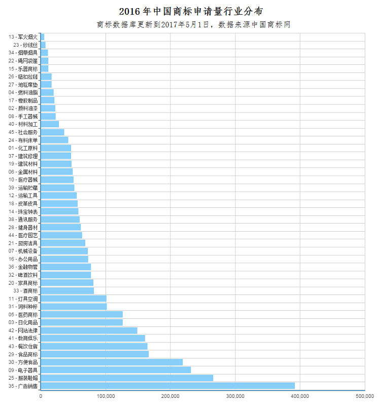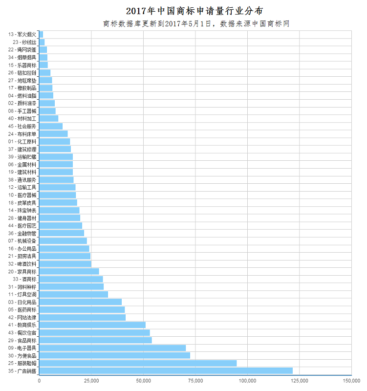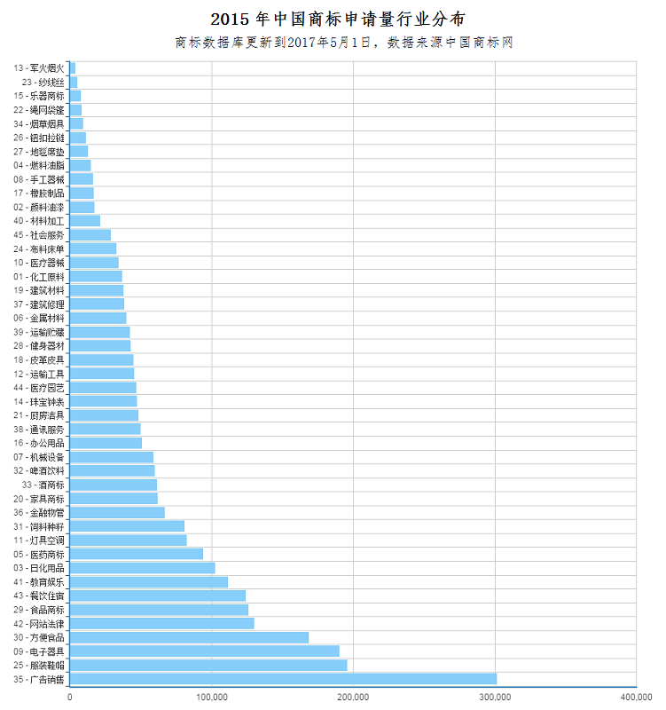 其中申请量最大的第35类广告销售预计全年注册量超过30万。